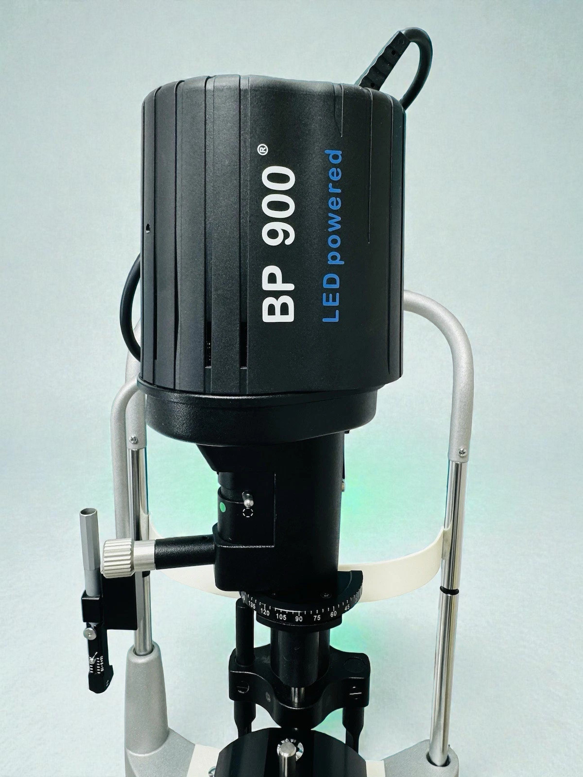 - Practices replacing aging 900-series units — the LED upgrade on this Haag Streit BP 900 extends the useful service life of the instrument well beyond a comparable halogen unit while maintaining the same familiar 900-series operating ergonomics and controls.
