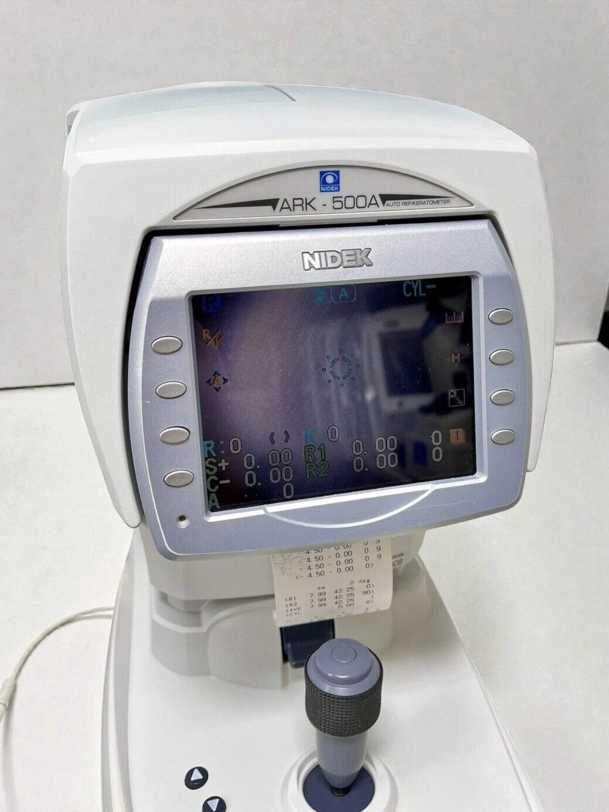 The ARK-500A also includes convenient functions for clinical workflow: on-screen comparison of previous/current measurements, keratometry ring image display for visual confirmation, and RS-232 connectivity for exporting measurement data to charting systems, NIDEK refractors, and other peripherals. The unit’s robust, clinic-grade construction, straightforward user menu and ability to print or transmit measurement data make it suitable for general ophthalmology, optometry, contact lens fitting assessments, and pre-operative screening. Overall, the ARK-500A balances accuracy, automation and connectivity in a compact package ideal for practices that need dependable objective refraction and keratometry without complexity.